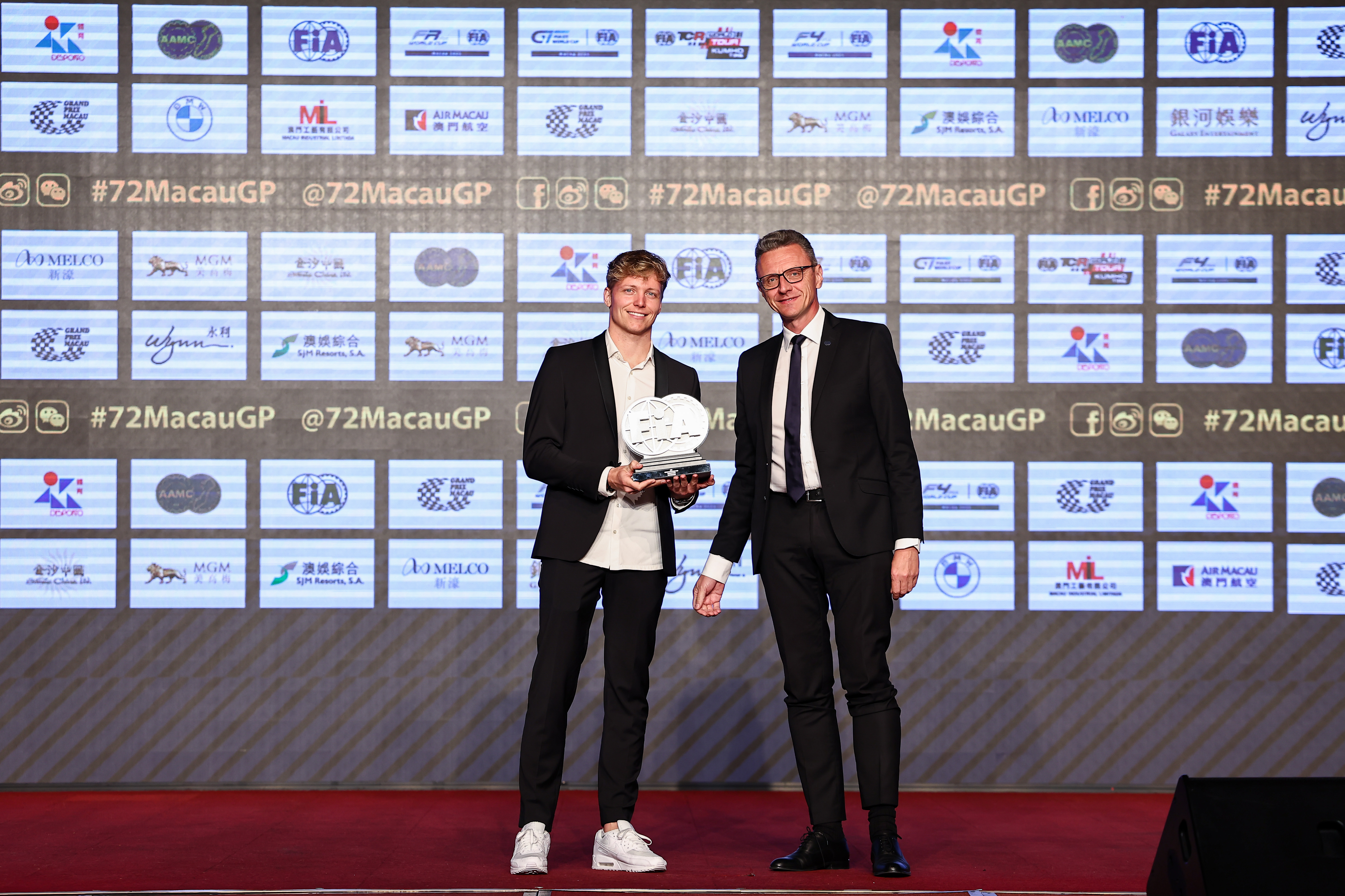2025 TCR WT Macau prize giving, Aaron Grech representing Joh Buchan, winner of Race 2 - Photo: WSC/Jun Qian Motorsport